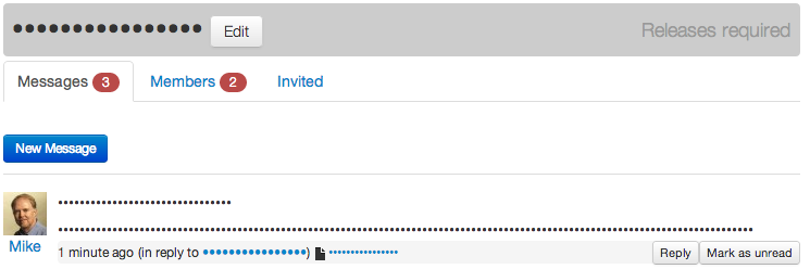 Access to messages and documents in a room can optionally be controlled by requiring releases. Releases allow you to post to everyone in the room, yet ensure that only people who you have explicitly allowed access are permitted to read your messages.